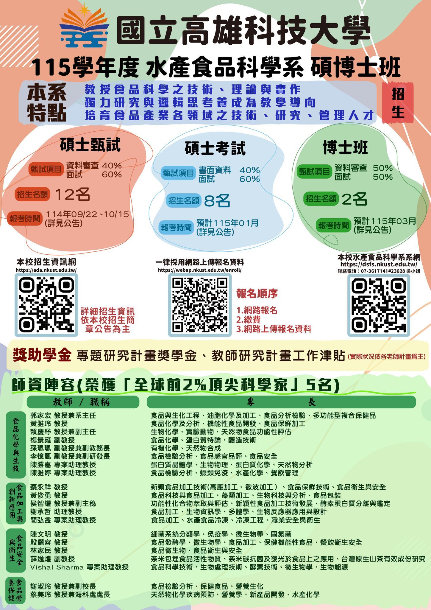115學年度水產食品科學系博士班、碩士班、碩士在職專班報名開始!提升專業,精英同行,讓您揮灑職場新光芒!